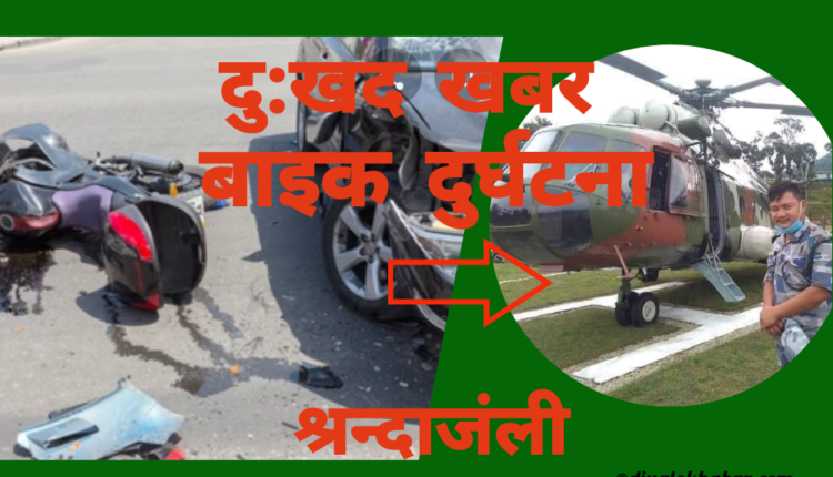 धनगढी: भाइटिका कै दिन कैलालीमा कारले मोटरसाइकललाई ठक्कर दिँदा एक जना एक जनाको मृत्यु भएको छ। बिहीबार जिल्लाको गौरीगंगा नगरपालिका-३ कुचैनीमा बा १२ च २११४ नम्बरको कारले सुपप्र ०१ ००८ प ५७५६ नम्बरको मोटरसाइकललाई ठक्कर दिदामोटरसाइकल चालकको मृत्यु भएको हो।