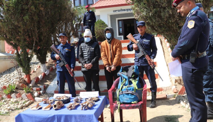 ‘संरक्षित वन्यजन्तुको आखेटोपहार अवैध रूपमा ओसारपोसार तथा खरिद बिक्री गर्न लागेको भन्ने विषेश सूचनाको आधारमा हामीले उहाँहरूलाई पक्राउ गरेका हौं,’ डीएसपी भट्टले भने, ‘प्रहरी टोलीले उनीहरूले बोकेको झोला चेकजाँच गर्दा झोलामा रहेको संरक्षित वन्यजन्तुको आखेटोपहारको जस्तो देखिने वस्तु फेला पारी दुवै युवकलाई नियन्त्रणमा लियौं।’