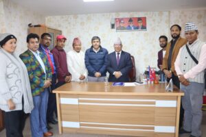 काठमाडौं: देउडा सांस्कृतिक मञ्च नेपालको आयोजनामा हुन गइरहेको देउडा आइडलको टिमले तीन पूर्व प्रधानमन्त्रीहरूसँग भेटघाट तथा छलफल गरेको छ । मञ्चका केन्द्रीय अध्यक्ष महेश कुमार औजीको नेतृत्वमा आइतबार पूर्व प्रधानमन्त्री तथा साहित्यकार लोकेन्द्र बहादुर चन्द, पूर्व प्रधानमन्त्री तथा नेपाली काँग्रेसका सभापति शेर बहादुर देउवा र नेकपा एकीकृत समाजवादीका अध्यक्ष एवम् पूर्व प्रधानमन्त्री माधव कुमार नेपालसँग भेटघाट तथा छलफल गरेका हुन् ।