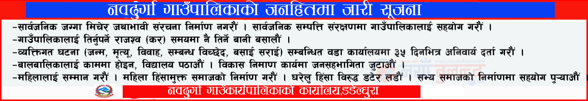 जिल्लाको नवदुर्गा गाउँपालिका–५ खनेखोलाकी यसोदा अवस्थिकोे कच्चिघरमा आगलागी भएको हो। आगलागीबाट यसोदाको गोठभित्र रहेको १ भैँसी १ पाडो र ३ वटा बाख्रा जलि घाइते भएका छन्। भने ३ थुप्रा खर र गाठ जलि पूर्ण रुपमा नष्ट भएको जिल्ला प्रहरी कार्यालय डडेलधुरा जनाएको छ।