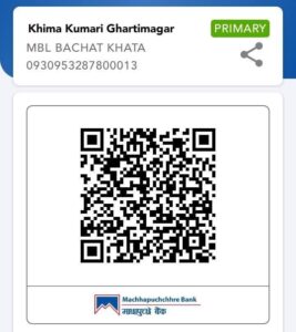 सहयोग गर्न चाहने महानुभावहरूले तल दिएको क्युआरमा सहयोग गर्न सक्नुहुनेछ ।